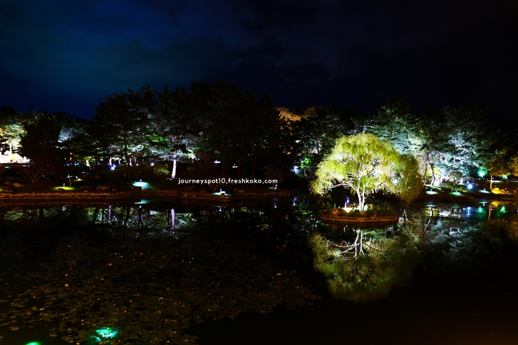 낮에는 고운 풍경을 담았다면, 밤에는 빛과 그림자의 조화가 만들어내는 낭만을 만날 수 있었답니다. 조명이 켜진 누각이 물에 반사되어 두 개의 궁처럼 보이는 순간, 그 아름다움에 숨이 멎을 뻔했어요.